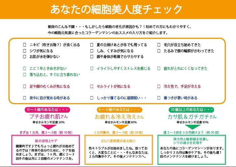 細胞活性により細胞が元気になると、その分エステの効果が出やすくなり、持続力もアップします。